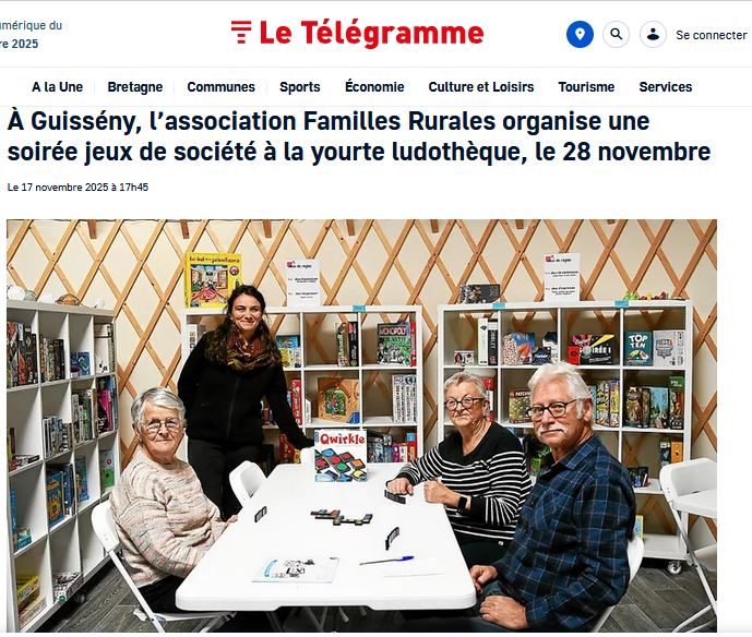 À Guissény, l’association Familles Rurales organise une soirée jeux de société à la yourte ludothèque, le 28 novembre À Guissény, l’association Familles Rurales organise une soirée jeux de société à la yourte ludothèque, le 28 novembre Espace de Vie Sociale À Guissény, l’association Familles Rurales organise une soirée jeux de société à la yourte ludothèque, le 28 novembre AFR Guisseny2025-11-19T11:24:01+02:00Catégories : Espace de Vie Sociale|