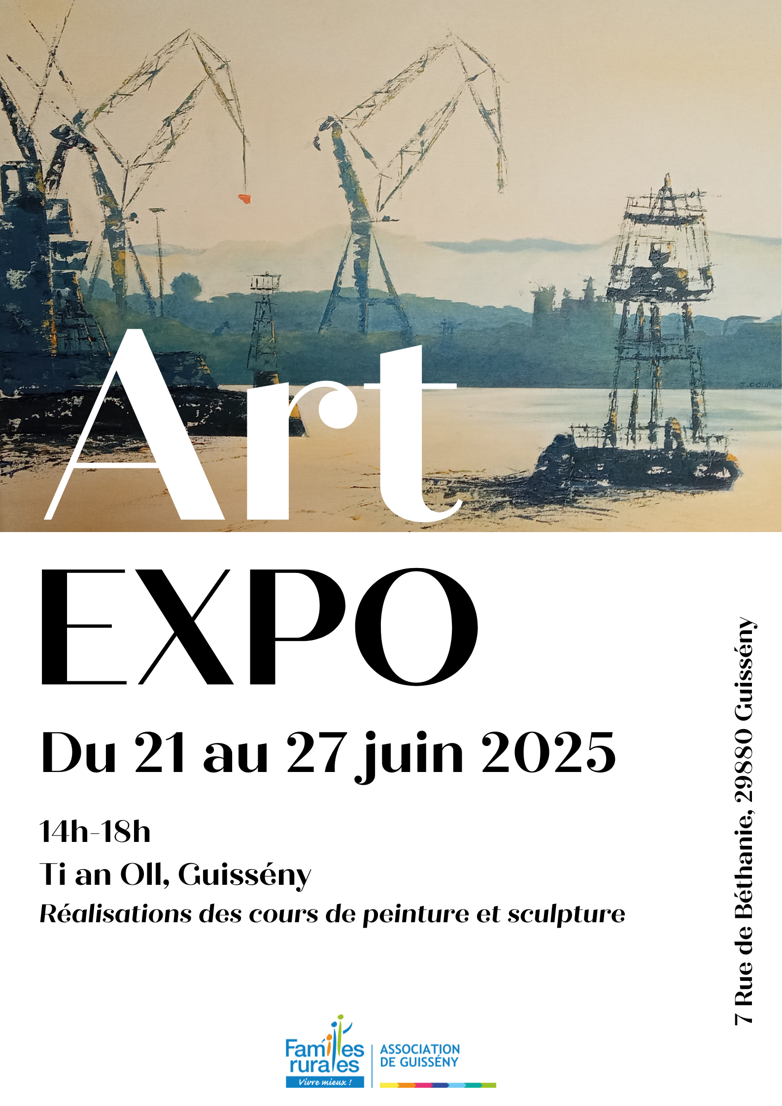 L’exposition de peinture et sculpture annuelle de Familles Rurales de Guissény sera visible du samedi 21 au vendredi 27 juin de 14h à 18h (jusqu’à 16h le vendredi 27) à Ti an Oll, 7 rue de Béthanie, 29880 Guissény.