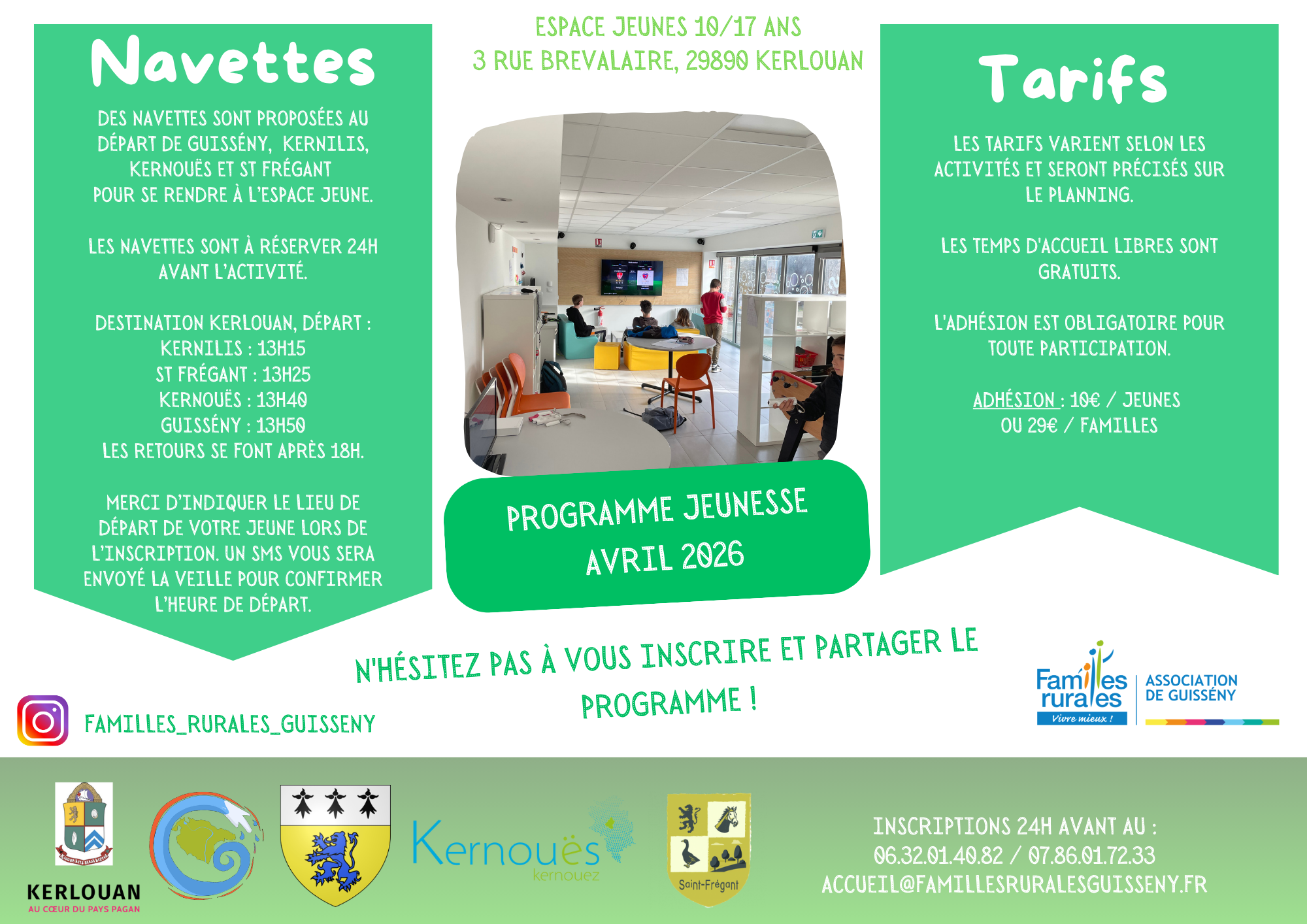Programme d’animations jeunesse 10/17 – vacances d’avril 2026 Programme d’animations jeunesse 10/17 – vacances d’avril 2026 Jeunesse Programme d’animations jeunesse 10/17 – vacances d’avril 2026 AFR Guisseny2026-04-10T15:09:40+02:00Catégories : Jeunesse|