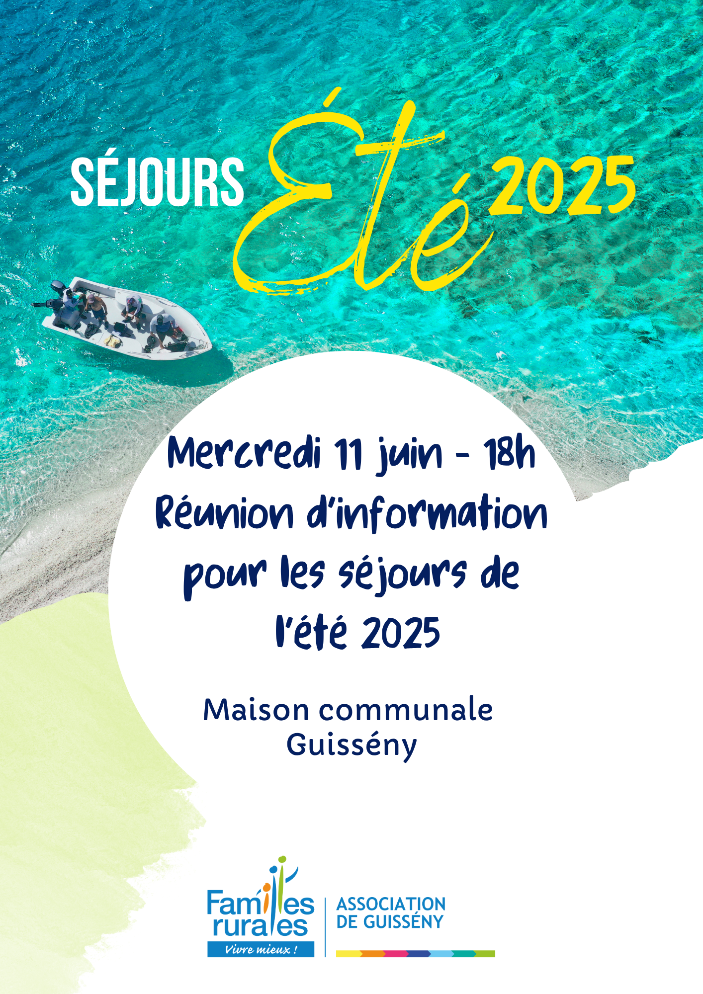 Une réunion d’information concernant les séjours de l’été 2025 aura lieu le mercredi 11 juin à 18h. L’occasion de rencontrer les animatrices et animateurs qui accompagneront vos enfants cet été, de poser vos questions, mais également de déposer les documents manquants à votre dossier.