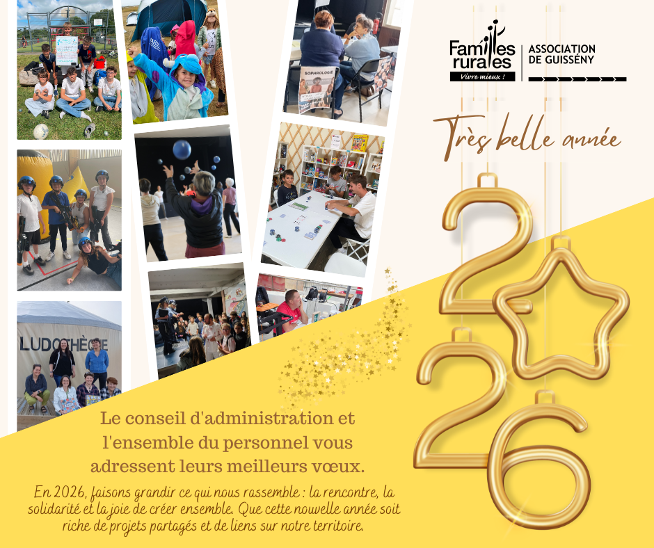 En 2026, faisons grandir ce qui nous rassemble : la rencontre, la solidarité et la joie de créer ensemble. Que cette nouvelle année soit riche de projets partagés et de liens sur notre territoire !
