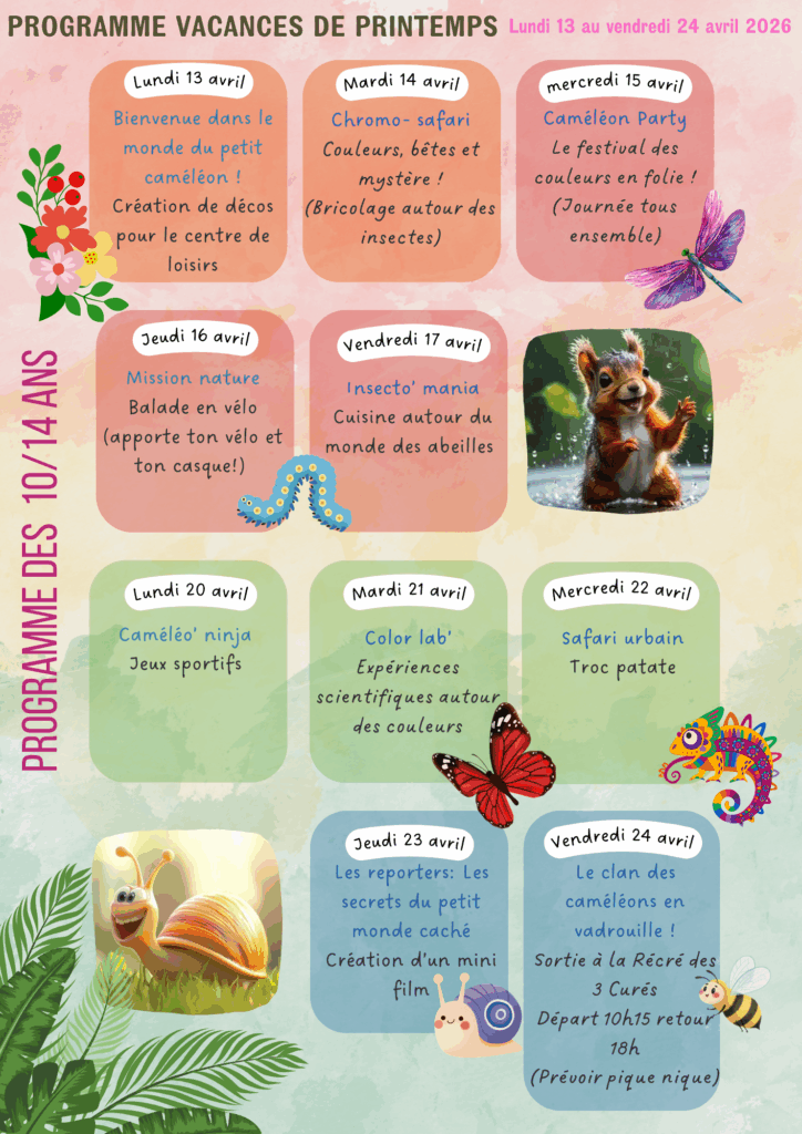 Planning Centre de Loisirs 3-17 ans – vacances d’avril 2026