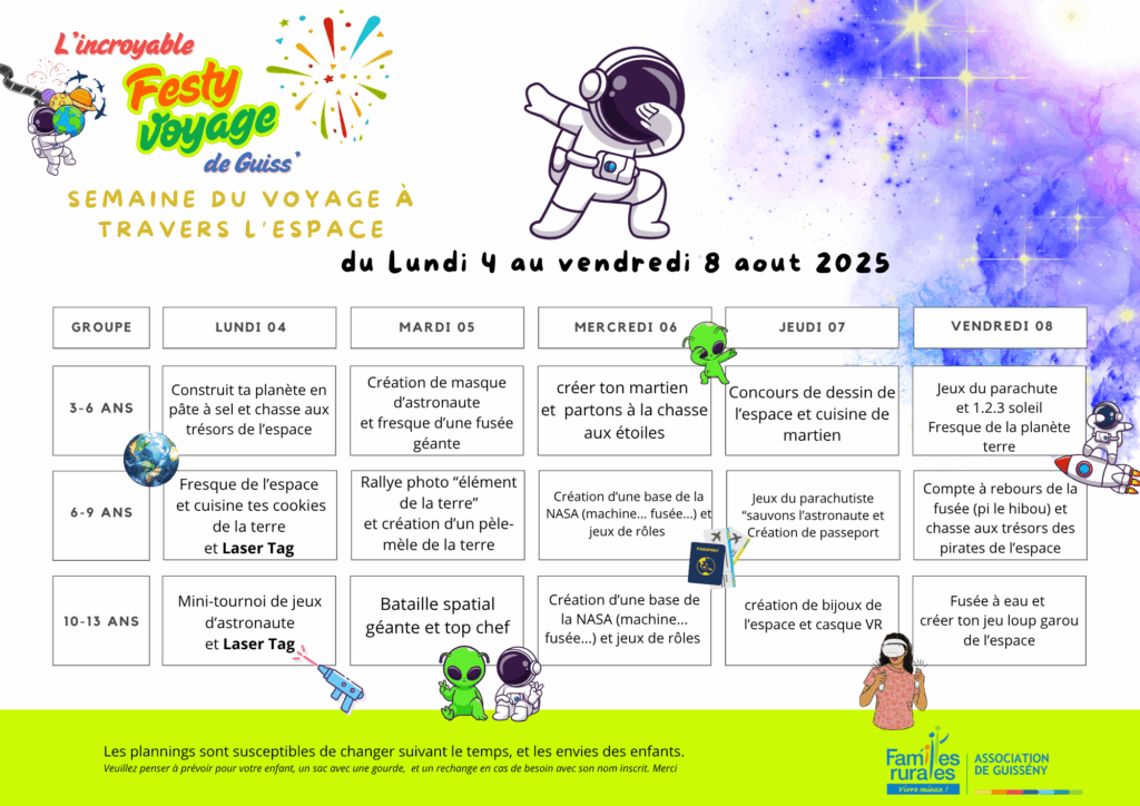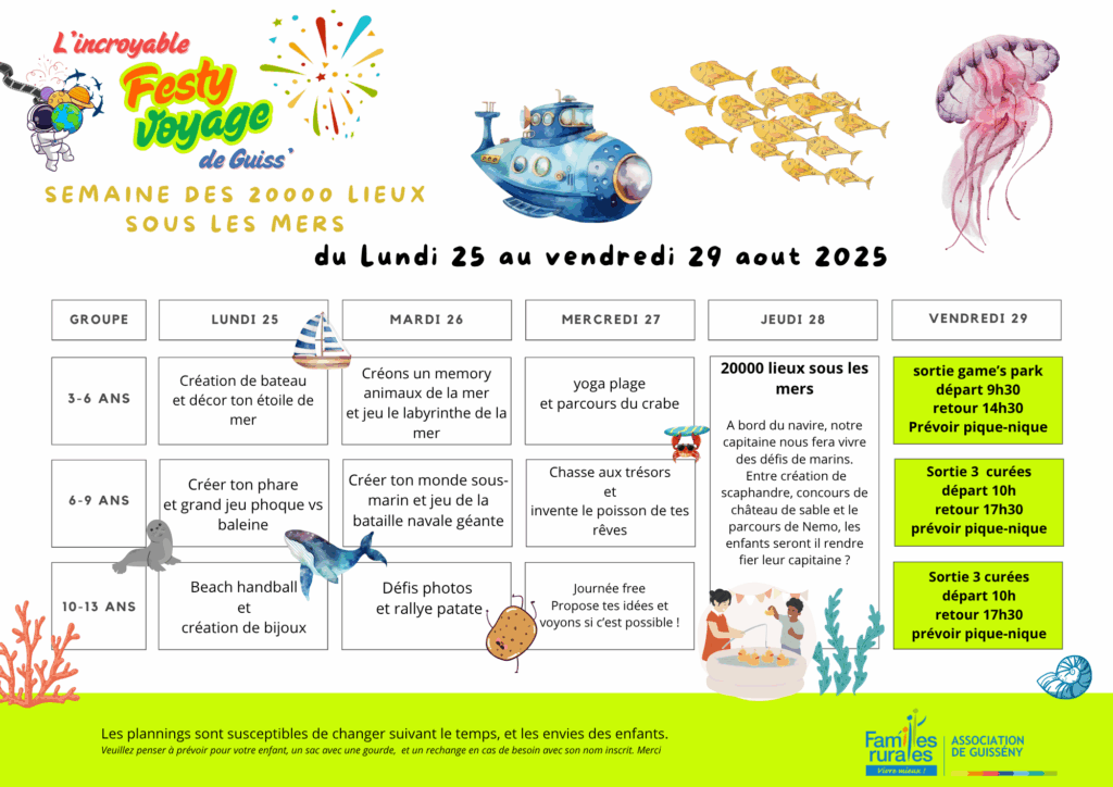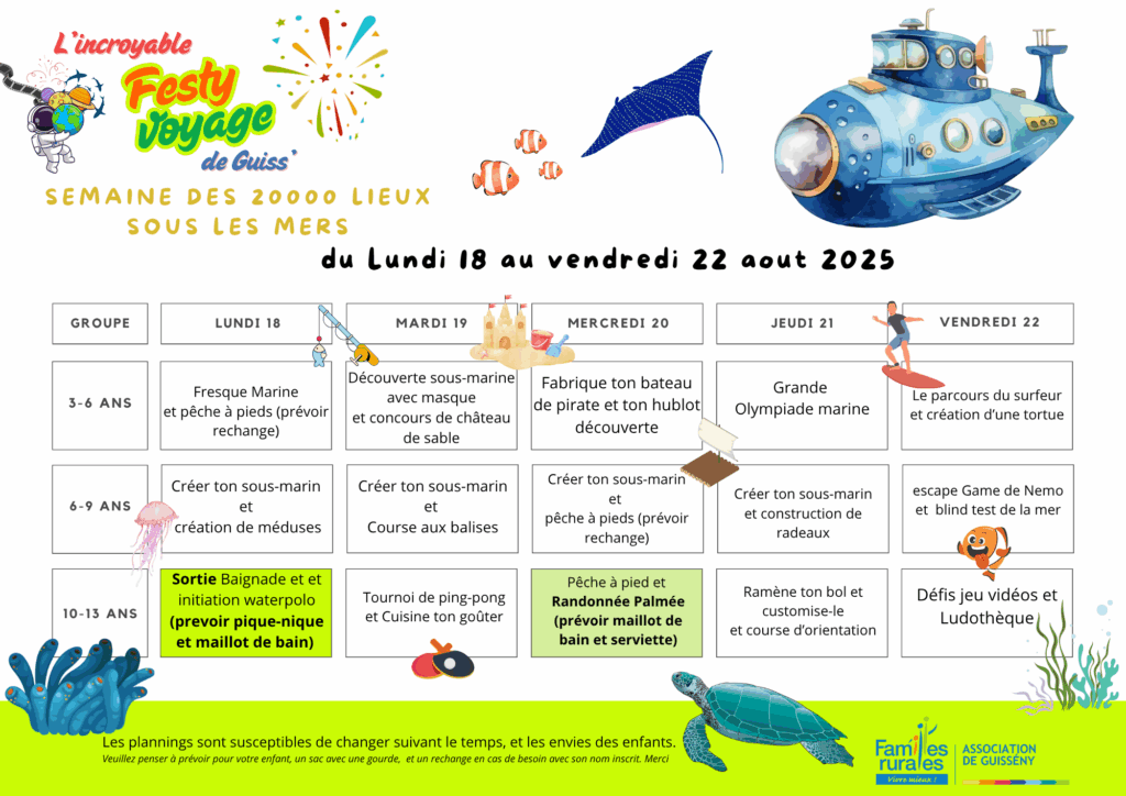 Programme 3-6 ans / 6-9 ans / 9-13 ans
